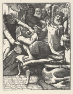 Our cover image is a picture of a print of a wood engraving done by the Brothers Dalziel for their 1894 book The Parables of Our Lord and Saviour Jesus Christ. The design is by the eminent pre-Raphaelite artist John Everett Millais (1829 – 96), entitled “The Unjust Judge and the Importunate Widow” and based on this morning’s gospel pericope.